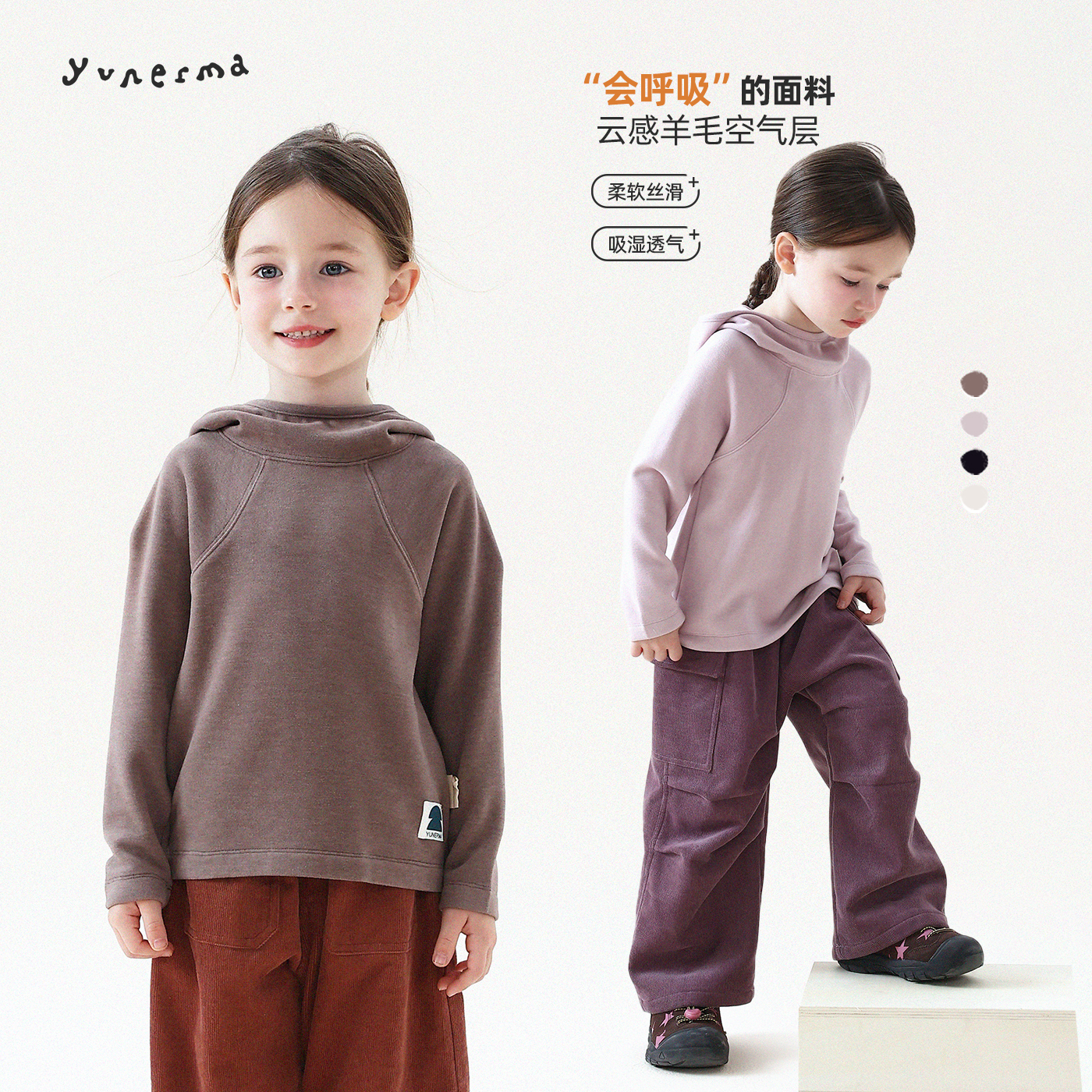 允儿妈女童冬季新款羊毛蚕丝加绒连帽打底衫儿童加厚T恤保暖上衣