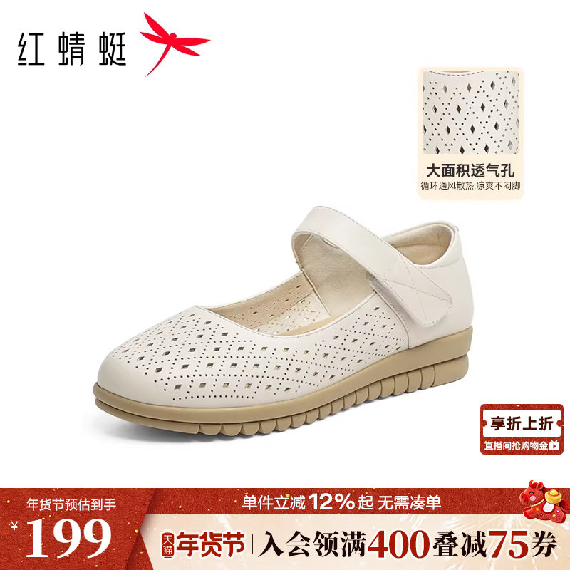 红蜻蜓妈妈凉鞋镂空单鞋软底舒适不累脚鞋子中老年皮鞋女鞋奶奶鞋