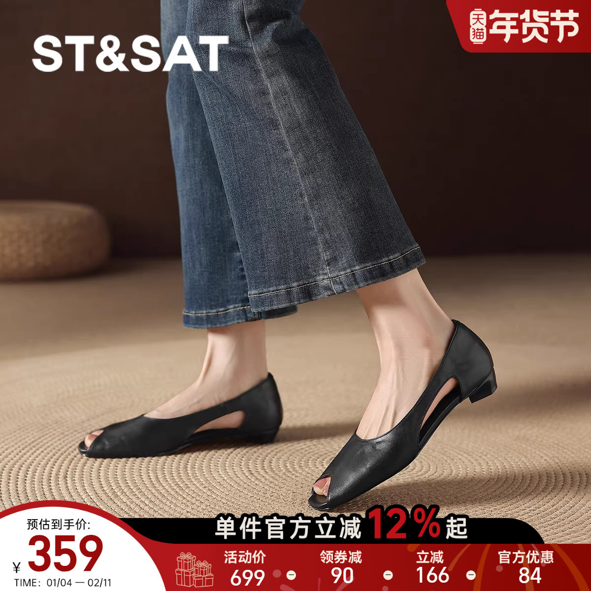 星期六露趾凉鞋女款2026新款春夏包跟透气镂空单鞋黑色高跟女鞋子