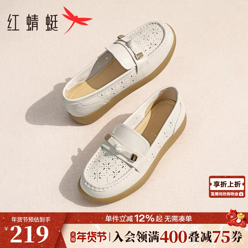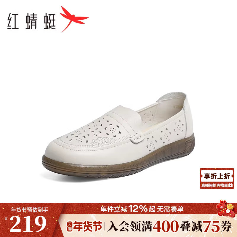 红蜻蜓妈妈鞋平底女鞋中老年鞋子真皮镂空单鞋女舒适软底奶奶皮鞋