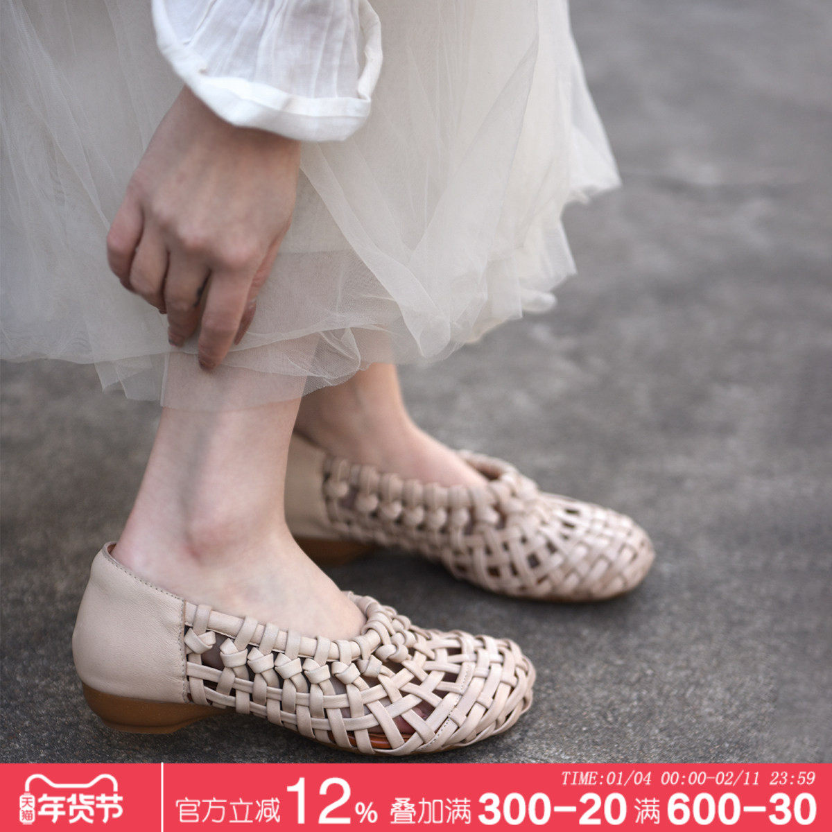 Artmu阿木原创复古真皮手工编织镂空单鞋女2026新款低跟凉鞋小众