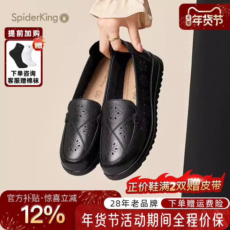 蜘蛛王女鞋官方旗舰店正品2025夏新款镂空单鞋休闲妈妈鞋真皮软底