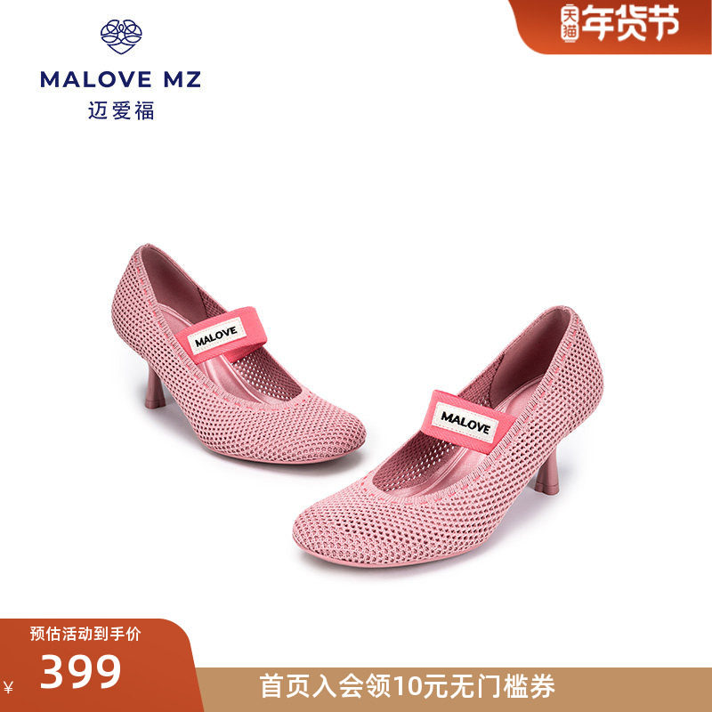 MALOVE MZ高跟鞋女细跟2025新款小众设计一字带圆头浅口镂空单鞋