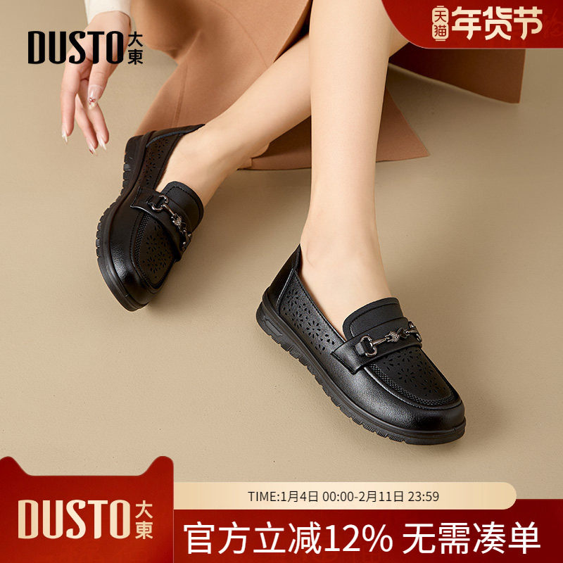 大东镂空单鞋女2026新款春季女士平底不累脚中老年软底舒适妈妈鞋