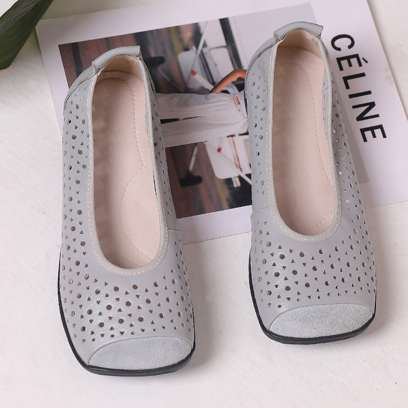 2025夏季新款软底休闲平底脚蹬牛筋底妈妈鞋透气镂空单鞋豆豆鞋女