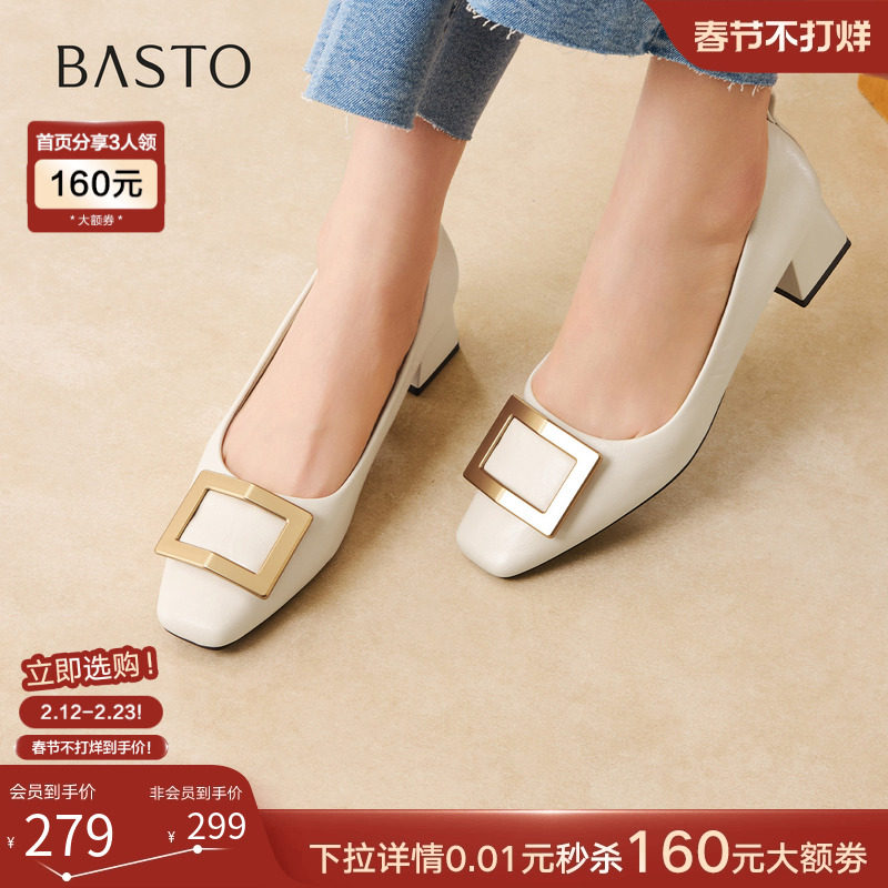 百丽粗高跟浅口单鞋女新款真皮不累脚妈妈上班鞋子D3S1DAQ5