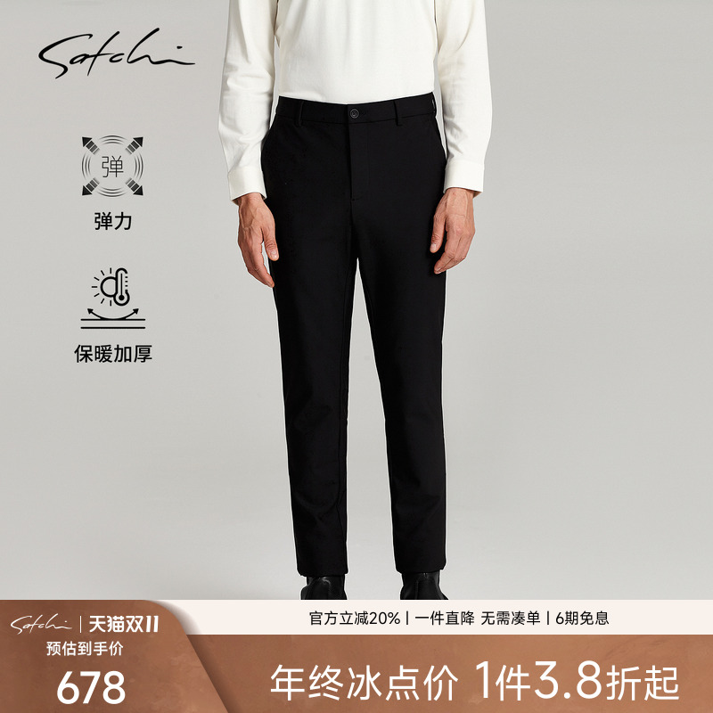 [保暖]SATCHI沙驰男装男士休闲裤冬季新款商务休闲直筒弹力裤子男