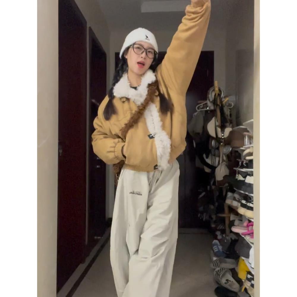 短款麂皮羊羔毛外套女冬季2024新款美式复古小个子棉衣棉服超好看