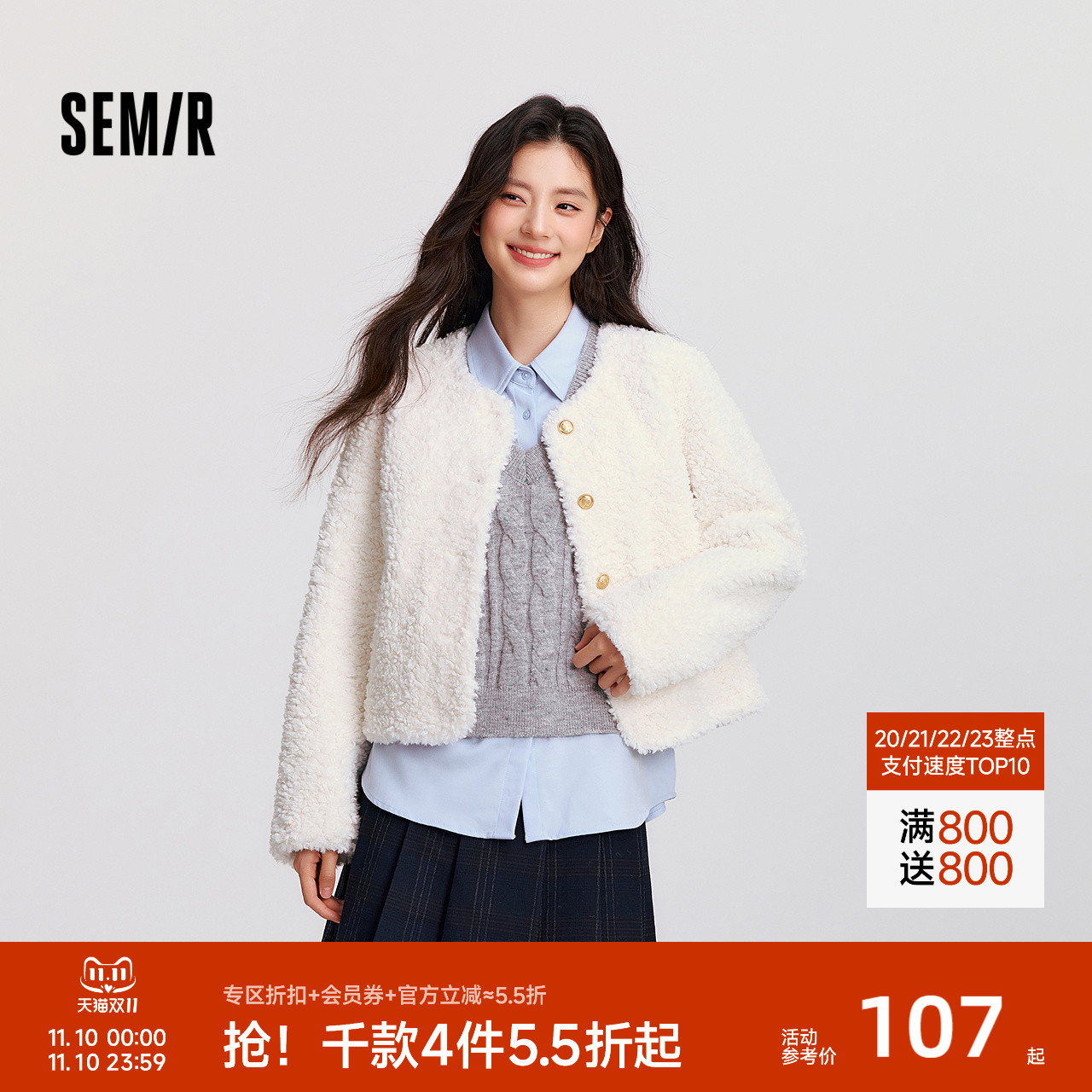 森马外套女冬季短款圆领修身仿羊羔毛仿麂皮夹克小个子小香风上衣