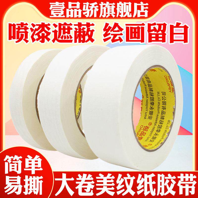 美纹纸胶带汽车改装喷漆遮蔽纸建筑喷涂装潢瓷砖美缝纸美术生绘画贴边留白分色纸可写字防水不伤纸皱纹纸