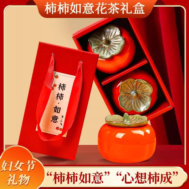 柿柿如意玫瑰花茶礼盒生日礼物送朋友同事员工的实用创意伴手礼品