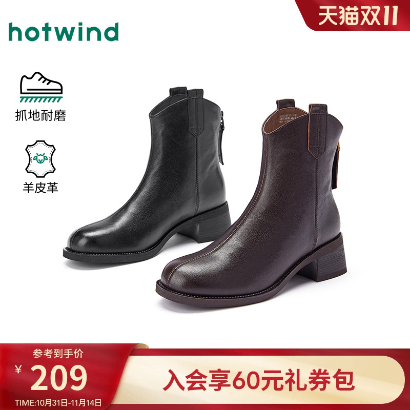 热风粗跟时装靴女鞋2025冬季新款黑色通勤百搭短筒靴显瘦增高靴子