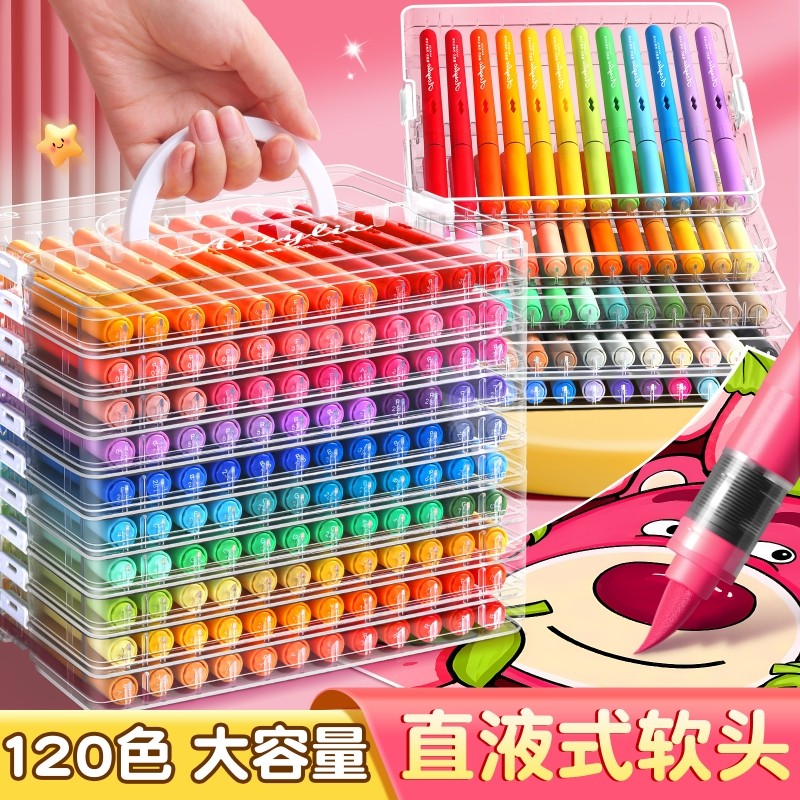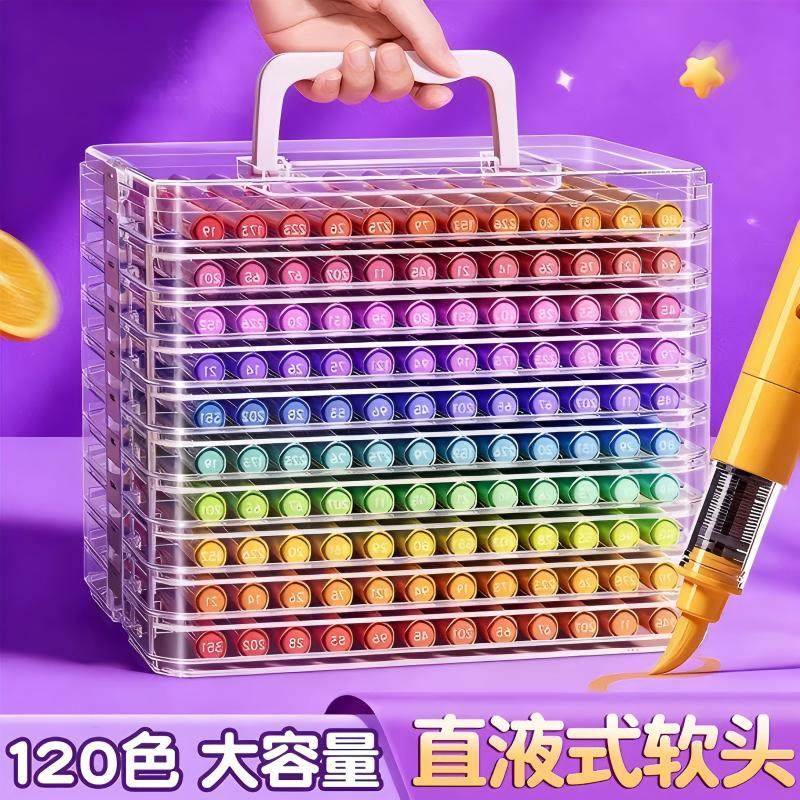 120色直液式丙烯马克笔软头水彩笔小学生美术专用大容量绘画套装美术生专用儿童可洗无毒幼儿园涂鸦笔水性