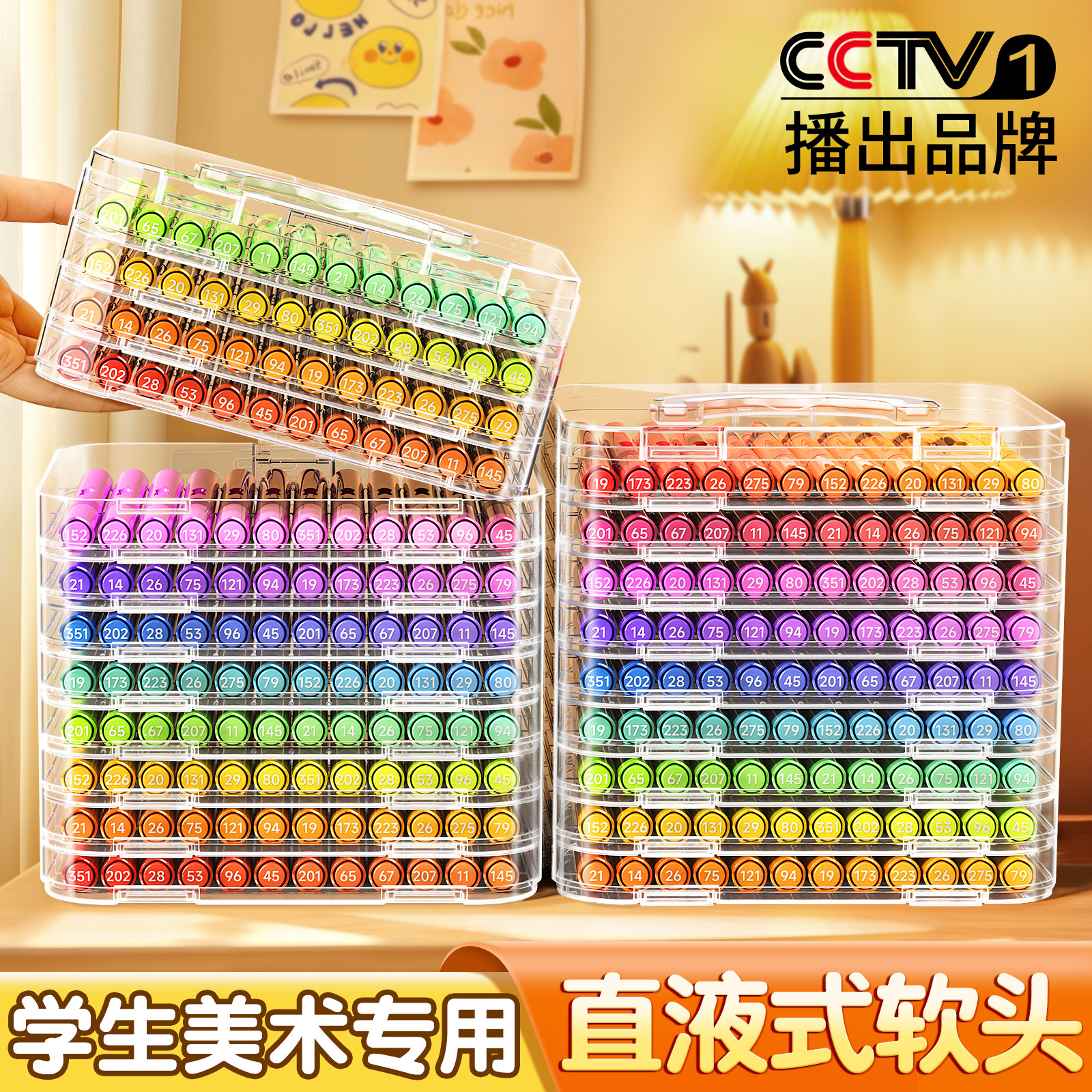 直液式丙烯马克笔软头绘画画笔套装美术生专用儿童可洗无毒水彩笔小学生美术专用礼盒幼儿园水性涂鸦颜色120