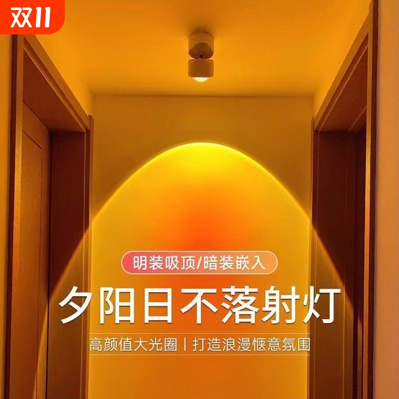 明装日落射灯墙壁家用背景墙玄关商用日不落轨道直播夕阳氛围灯潮