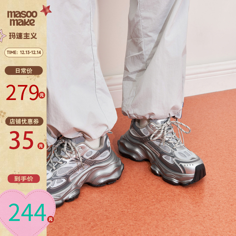 玛速主义2025新款时尚休闲运动鞋女冬轻便百搭厚底老爹鞋透气单鞋