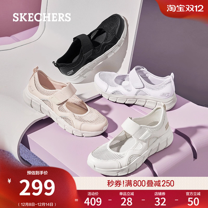 斯凯奇女鞋休闲运动玛丽珍鞋软底厚底流行浅口单鞋轻便护士鞋百搭