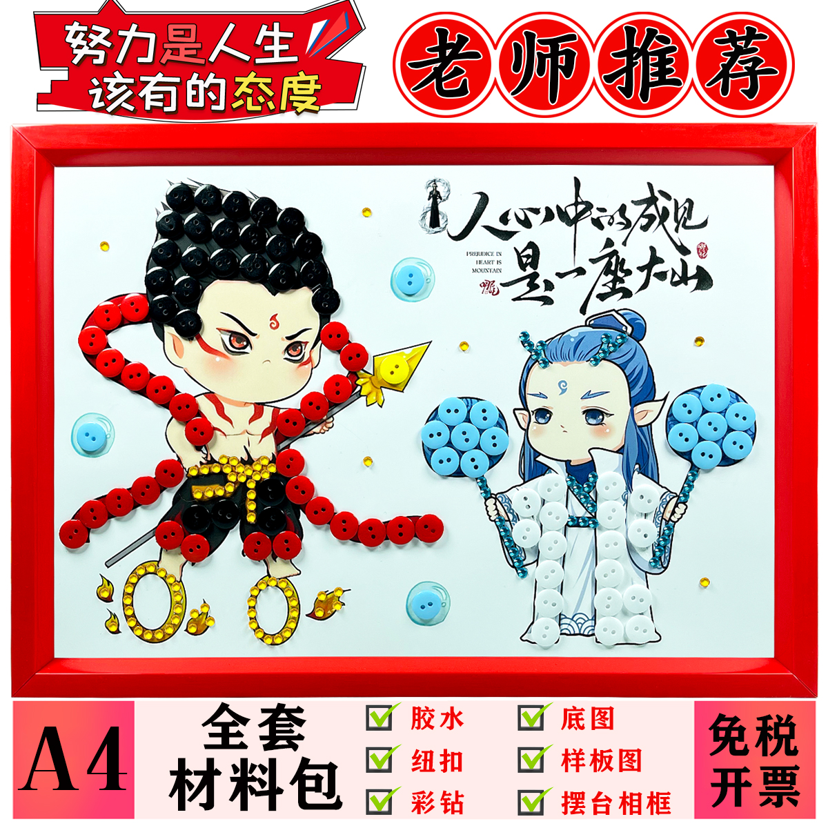 哪吒动漫主题DIY手工纽扣画创意粘贴画幼儿园小学生手工立体摆台