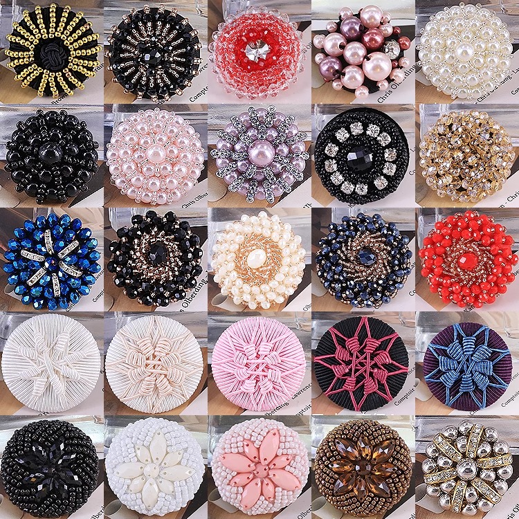 精致纯手工纽扣串珠手工扣子珍珠花朵钮扣大衣外套装饰扣珠子花扣