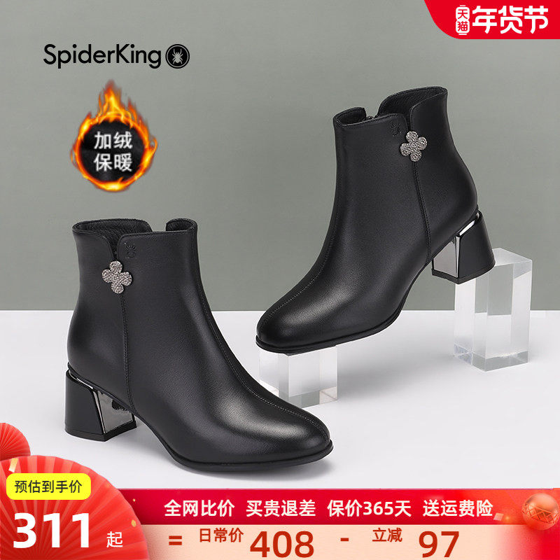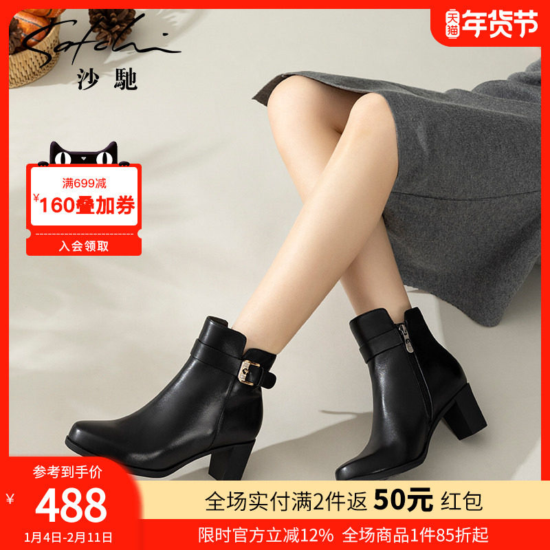 - 百搭粗跟单靴短靴女春秋