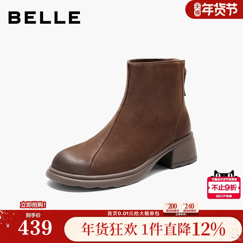 - 秋季女鞋短靴 粗跟