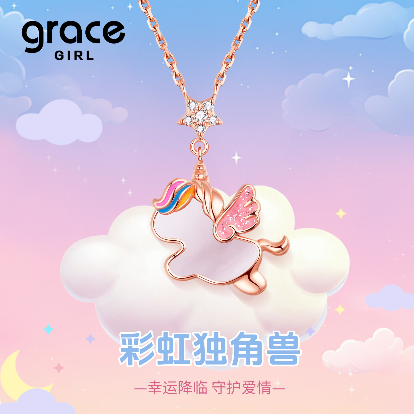 Grace Girl彩虹独角兽项链轻奢爆款送女友闺蜜情人节新年2026礼物