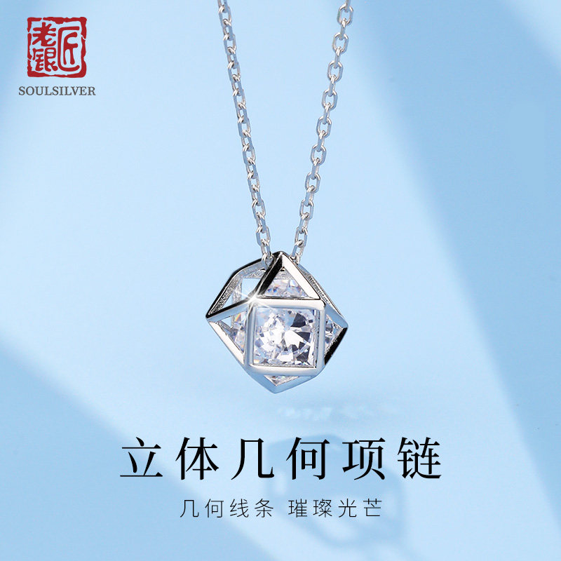 s999纯银小方糖项链女轻奢小众设计感闪钻锁骨链送女友情人节礼物
