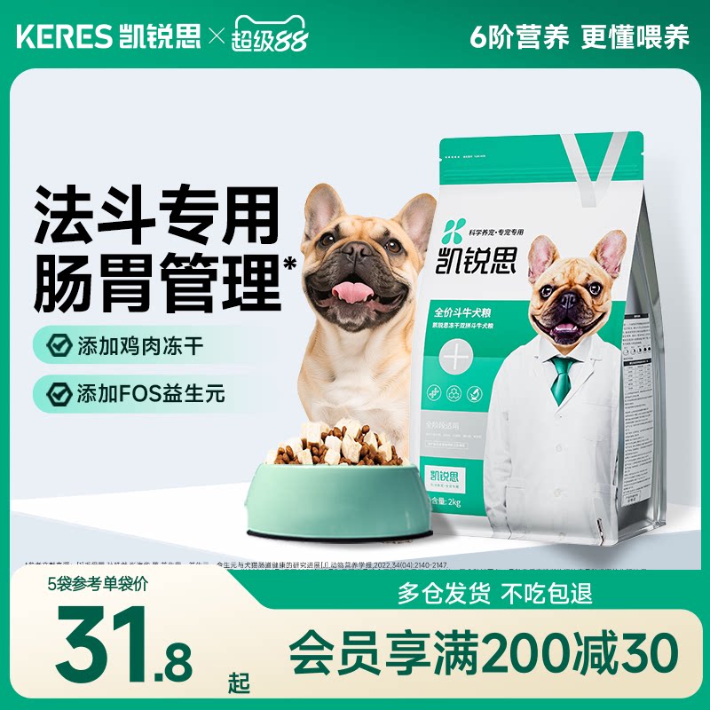 凯锐思法斗冻干双拼狗粮幼犬成犬通用型法国斗牛犬专用犬粮20斤