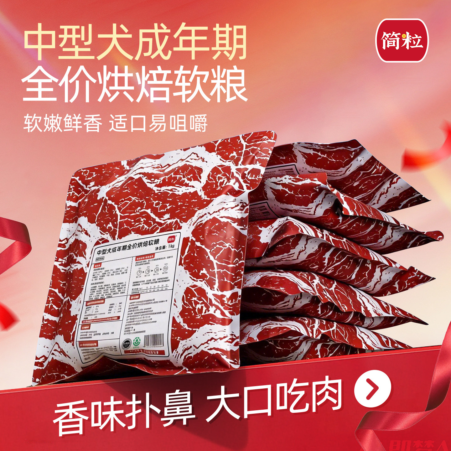 简粒狗粮中老年犬烘焙软粮大龄高龄专用老年犬软粮6岁以上狗主粮