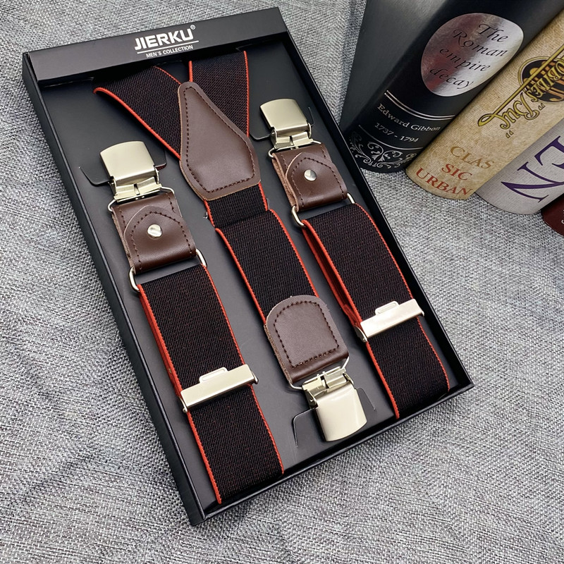英伦风复古男士背带夹成人松紧弹力西裤吊裤带4夹男式吊带扣肩带