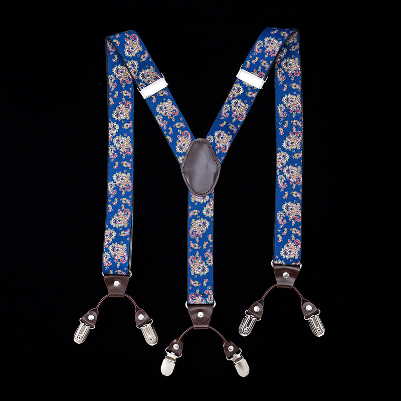 英伦复古风背带夹松紧弹力男士成人西裤吊裤带扣肩带六夹男式吊带