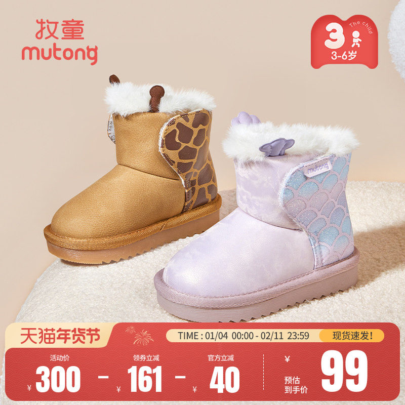 牧童儿童雪地靴冬季新款男女童加厚保暖宝宝棉鞋加绒中筒户外童鞋