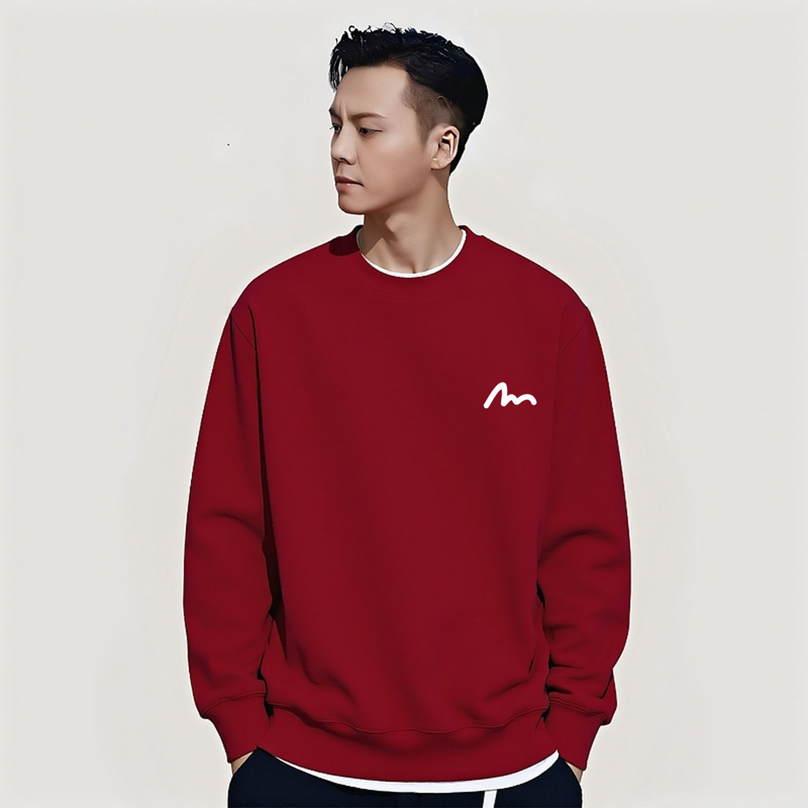 香港潮牌圆领卫衣男秋冬港风简约情侣酒红色外套纯棉宽松百搭上衣