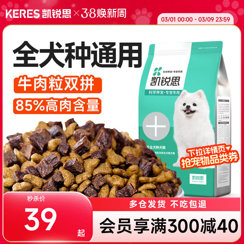 凯锐思20%牛肉粒双拼狗粮成犬幼犬通用型泰迪比熊博美金毛专用粮
