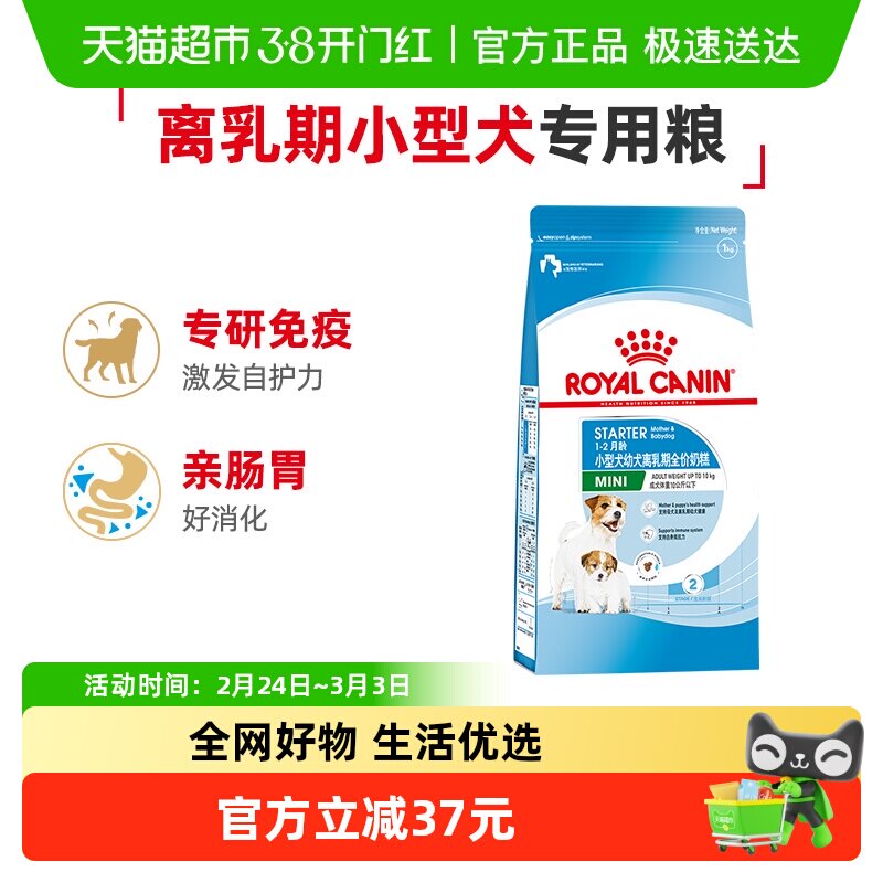皇家狗粮MIS30小型犬幼犬粮1kg泰迪比熊离乳期专用奶糕粮官方正品