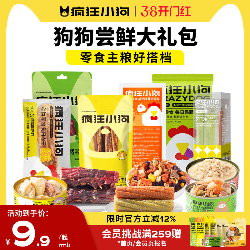 疯狂小狗狗零食磨牙棒小型犬幼犬冻干宠物泰迪罐头狗粮拌饭大礼包