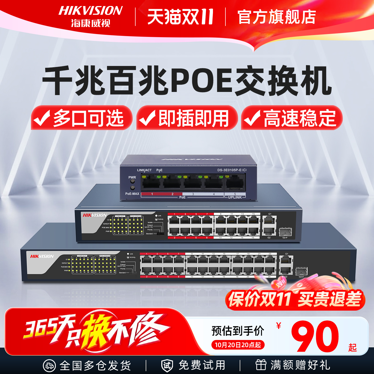海康光百兆千兆poe交换机4口8口16口24口智能48V标准POE供电以太网供电交换机网络安防监控出租房摄像头国标