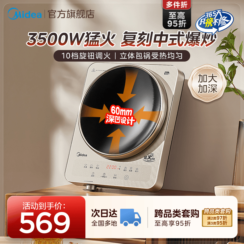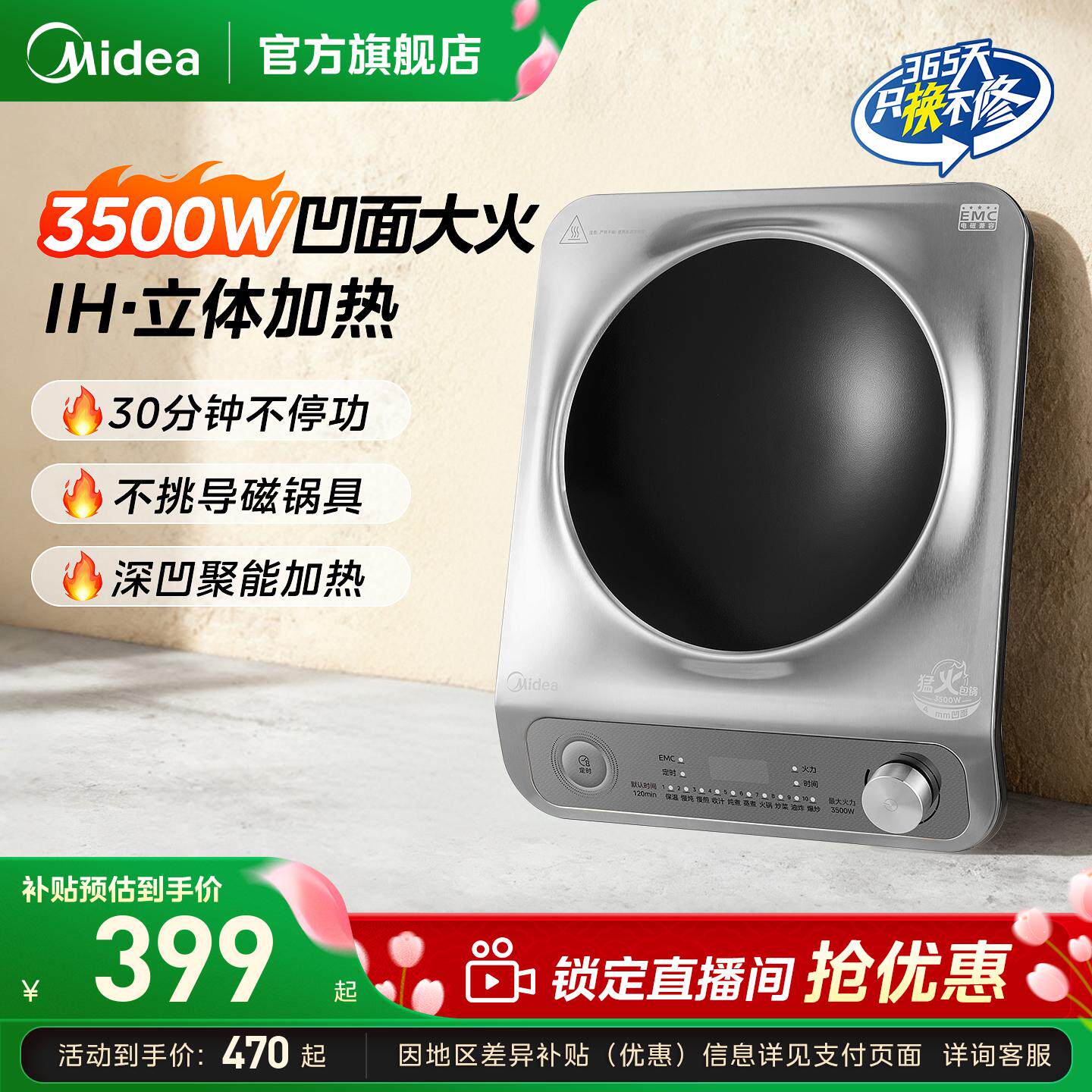 美的凹面2025新款电磁炉家用3500w大功率炒菜锅一体全套正品官方