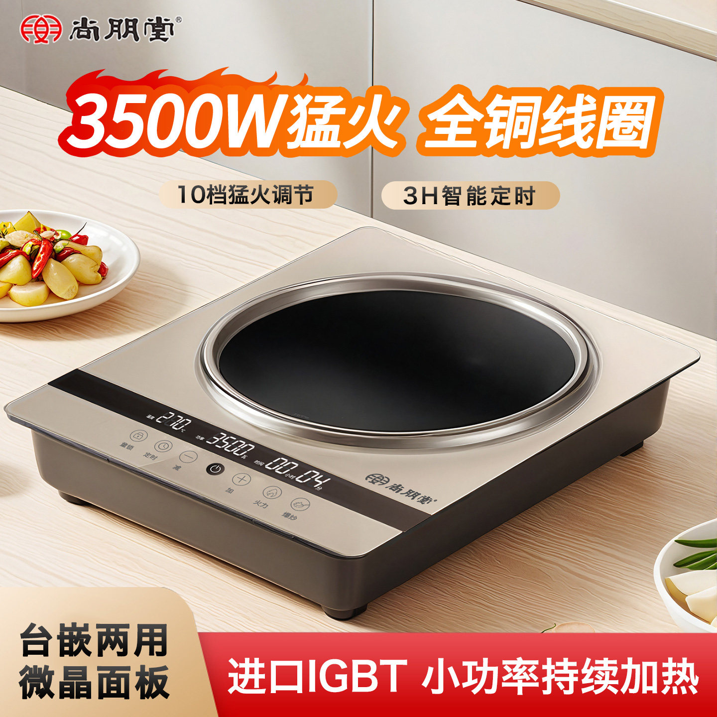 尚朋堂全铜大功率凹面电磁炉3500W家用猛火尖底炉爆炒凹底电磁灶