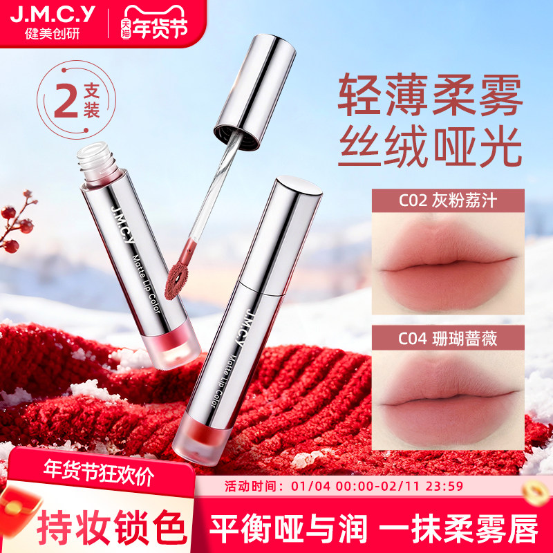 2支装|健美创研唇霜唇泥女不掉色不沾杯雾面哑光丝绒口红唇釉学生