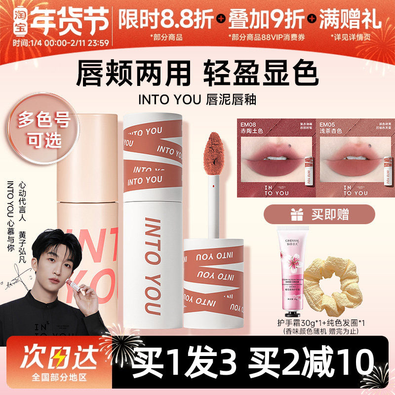 INTO YOU联名女主角唇泥雾面哑光丝绒口红唇釉唇彩唇膏素颜唇颊