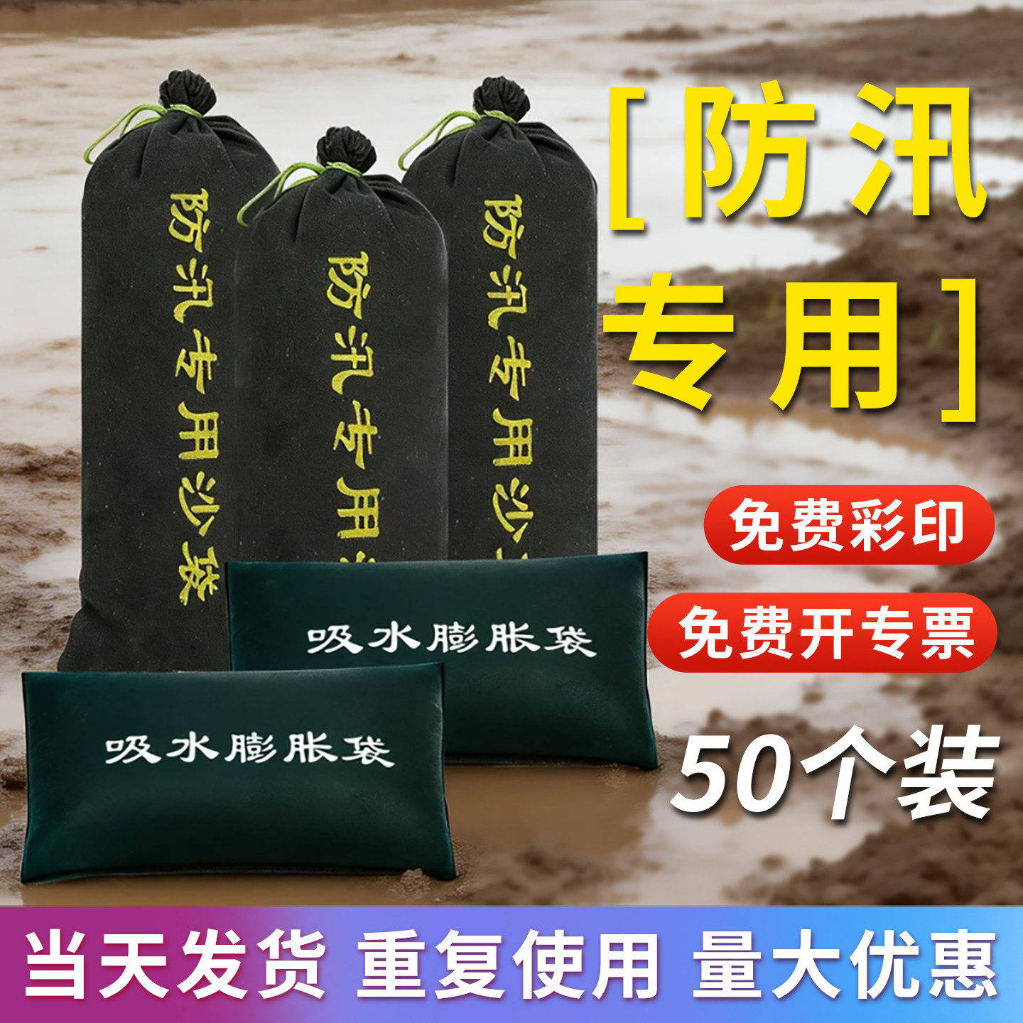 50只装防汛沙袋专用加厚帆布抗洪压重物业车库吸水膨胀袋长条挡水