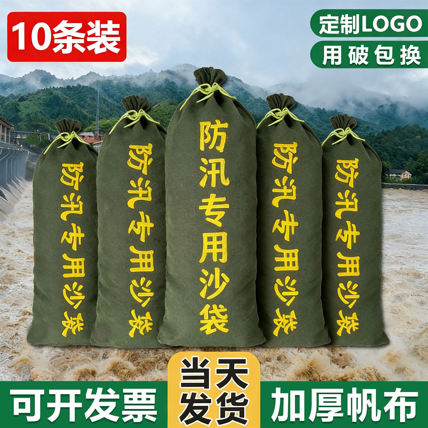10个装防汛沙袋防洪专用吸水膨胀袋抗洪挡水神器加厚帆布物业家用