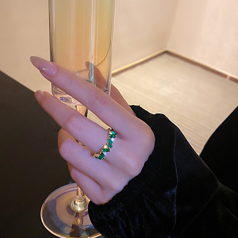 祖母绿锆石开口戒指女时尚个性小众设计食指戒高级感指环新款手饰