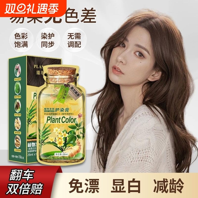 新款植物果染膏植萃护染膏黑色泡泡染发剂天然纯无刺激盖白发正品