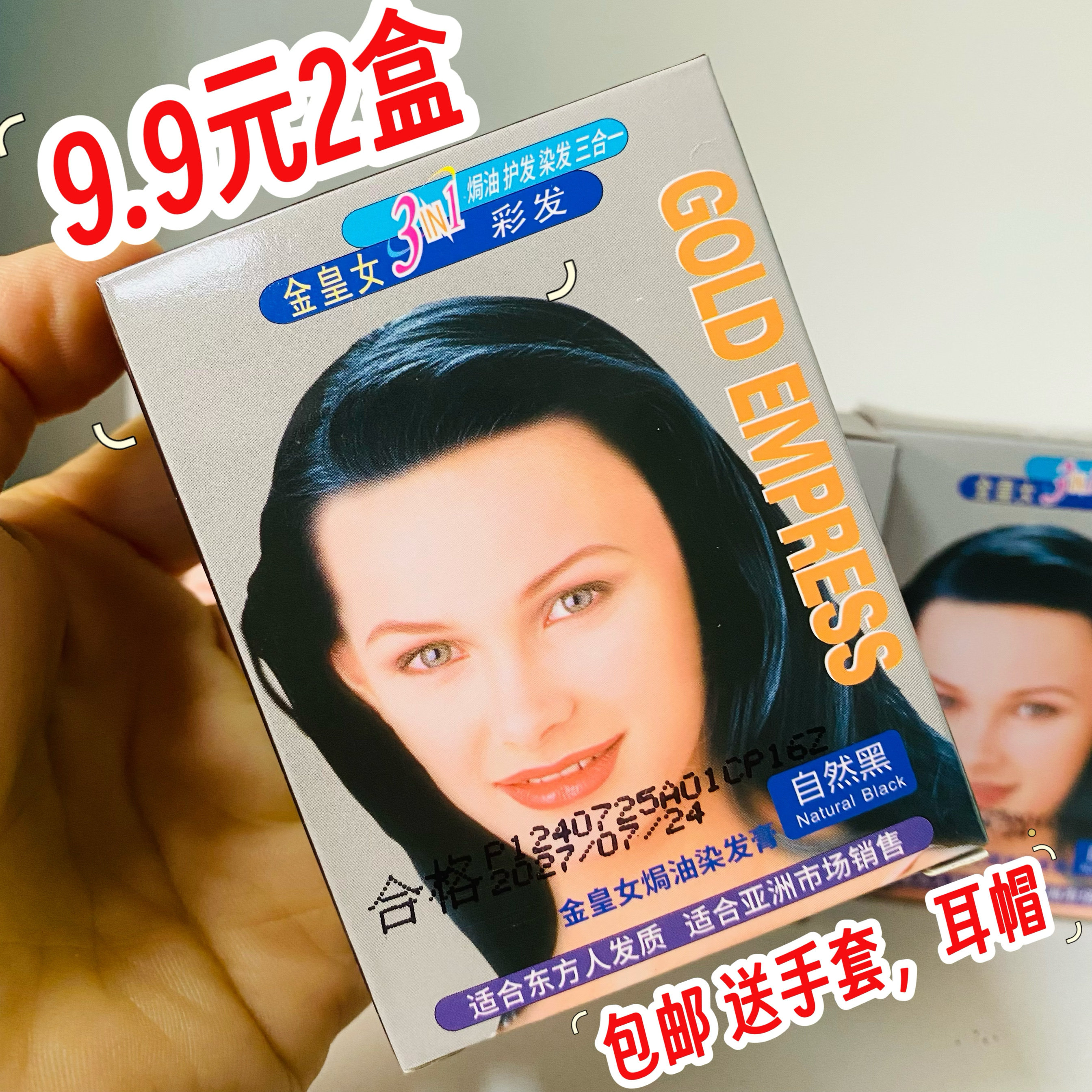 包邮2盒9.9】金皇女染发膏自然黑天然植物染发剂22克护发染色