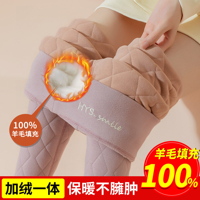 羊毛保暖裤女内穿秋冬季加绒加厚棉裤东北特厚秋裤大码线裤打底裤