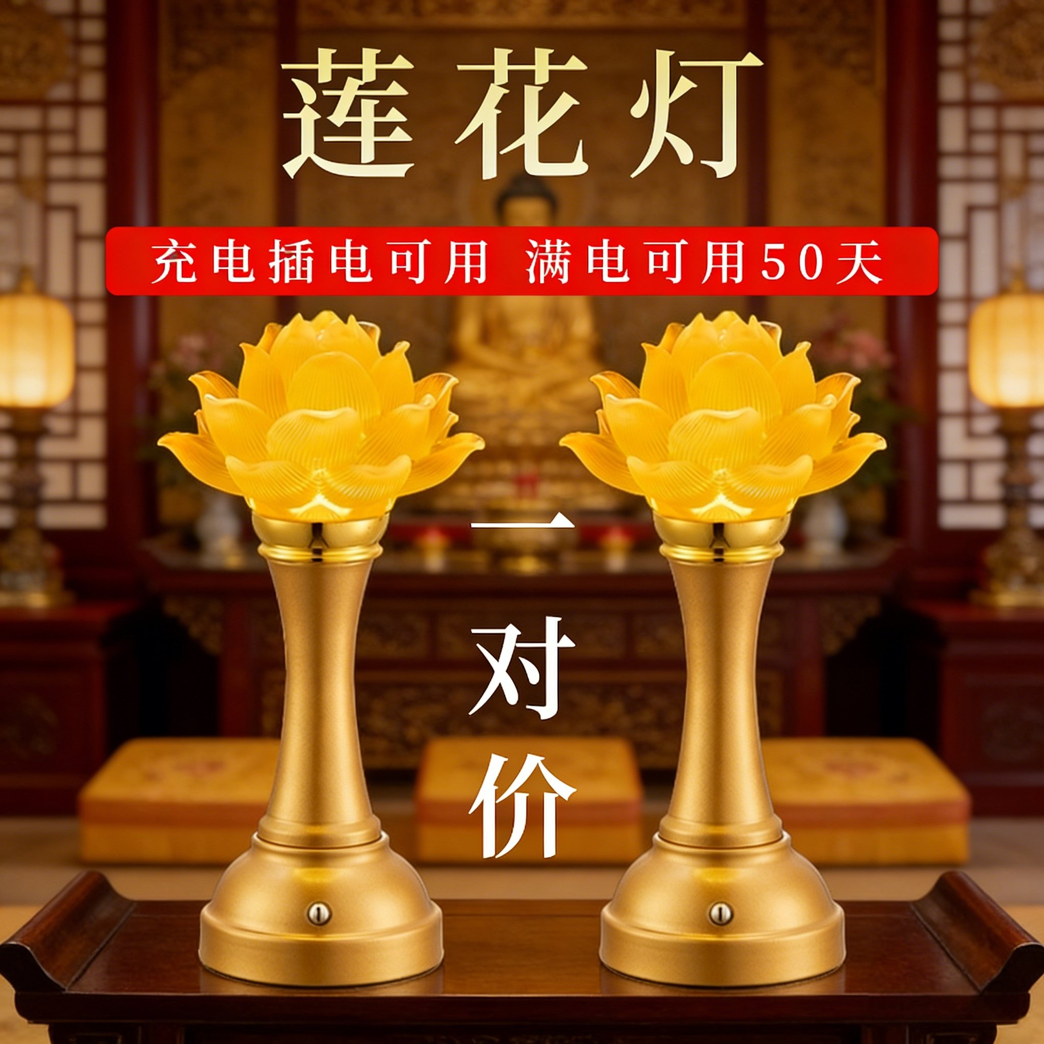 新款莲花灯供佛灯家用充电佛前led一对神台灯插电观音财神长明灯