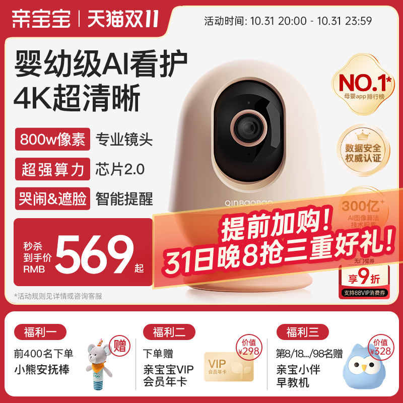 亲宝宝AI看护器Pro版婴儿监护器4K超清画质宝宝监控摄像头