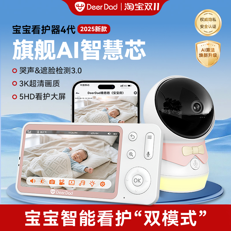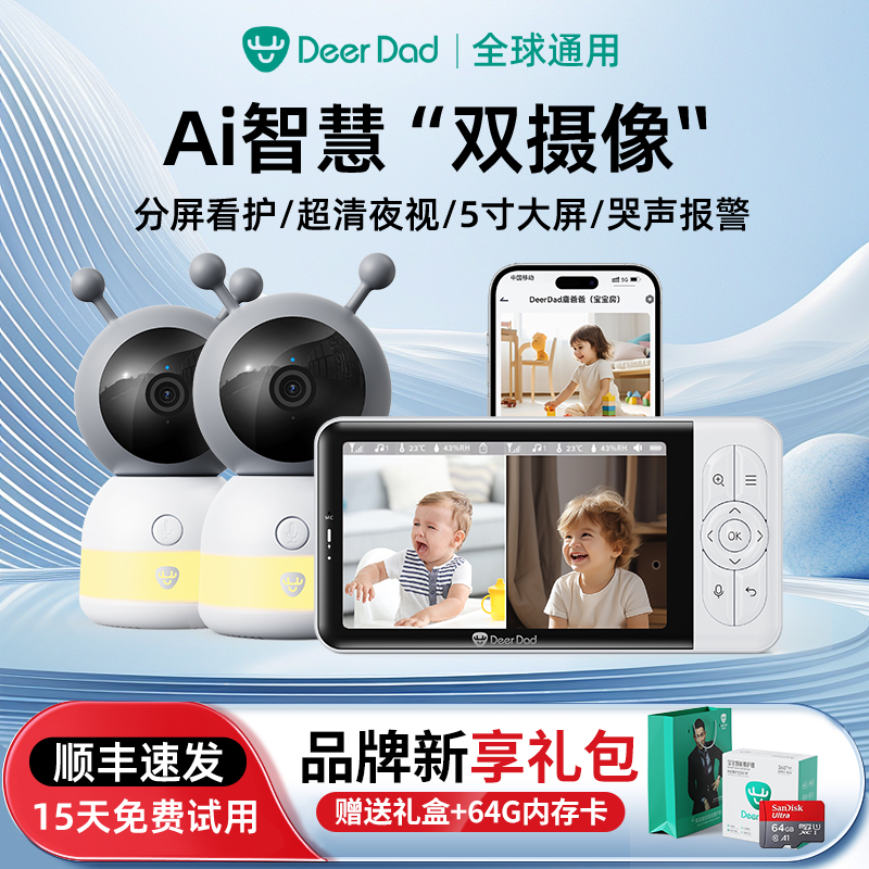 DeerDad鹿爸婴儿监护器智能宝宝监控看护器双摄像头家用带娃哭声